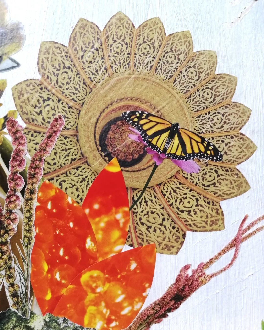 Analogue collage with mixed media. Recycle frame.